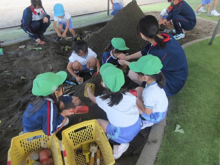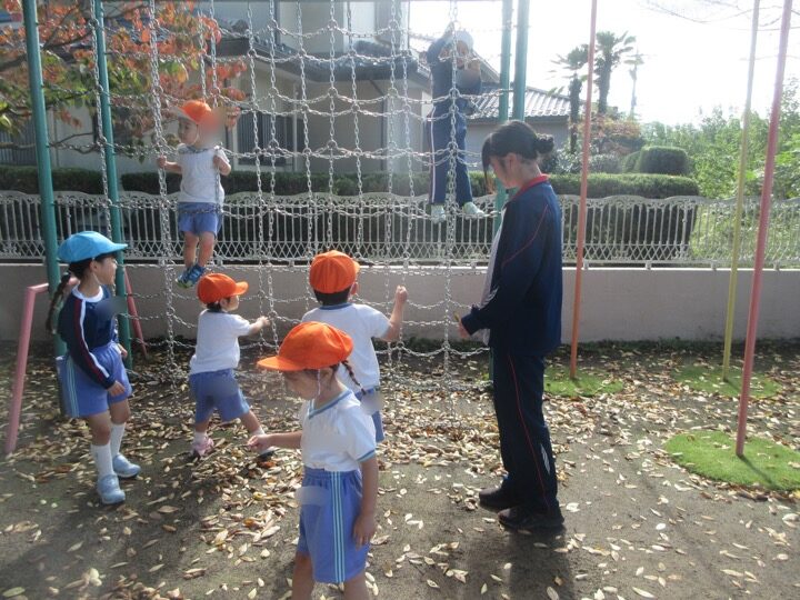今日は中学校のお兄さんお姉さんが幼稚園に遊びにきてくれました。鬼ごっこをしたり、砂場をしたり、ブランコをしたり…いつもの戸外遊びもいつも以上に楽しく、笑い声が園庭に響いていました☺️