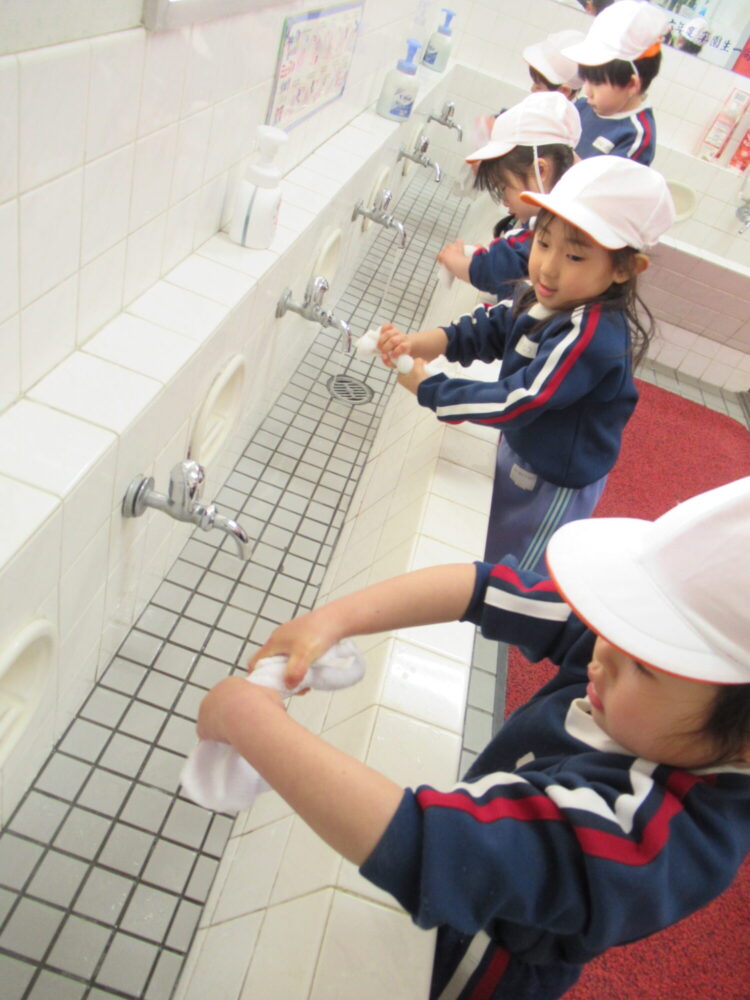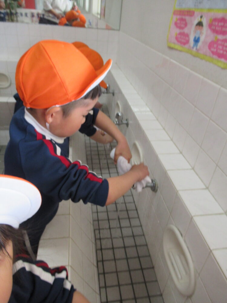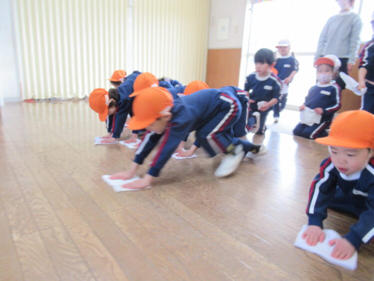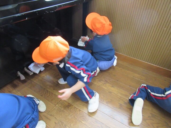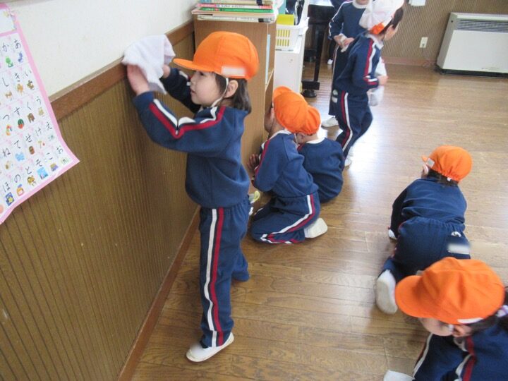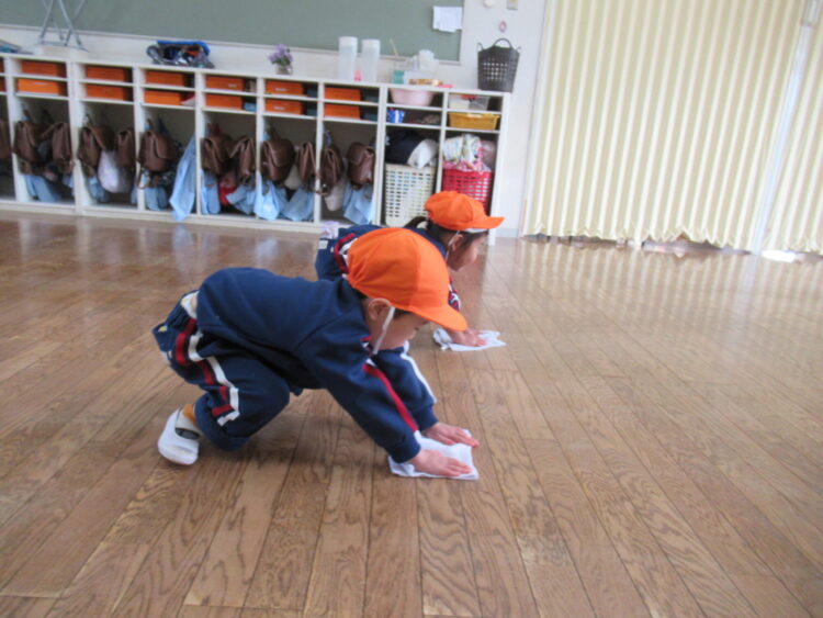 子どもたちは「あっ、ここが汚れてる〜」と自分から進んでお掃除していました。